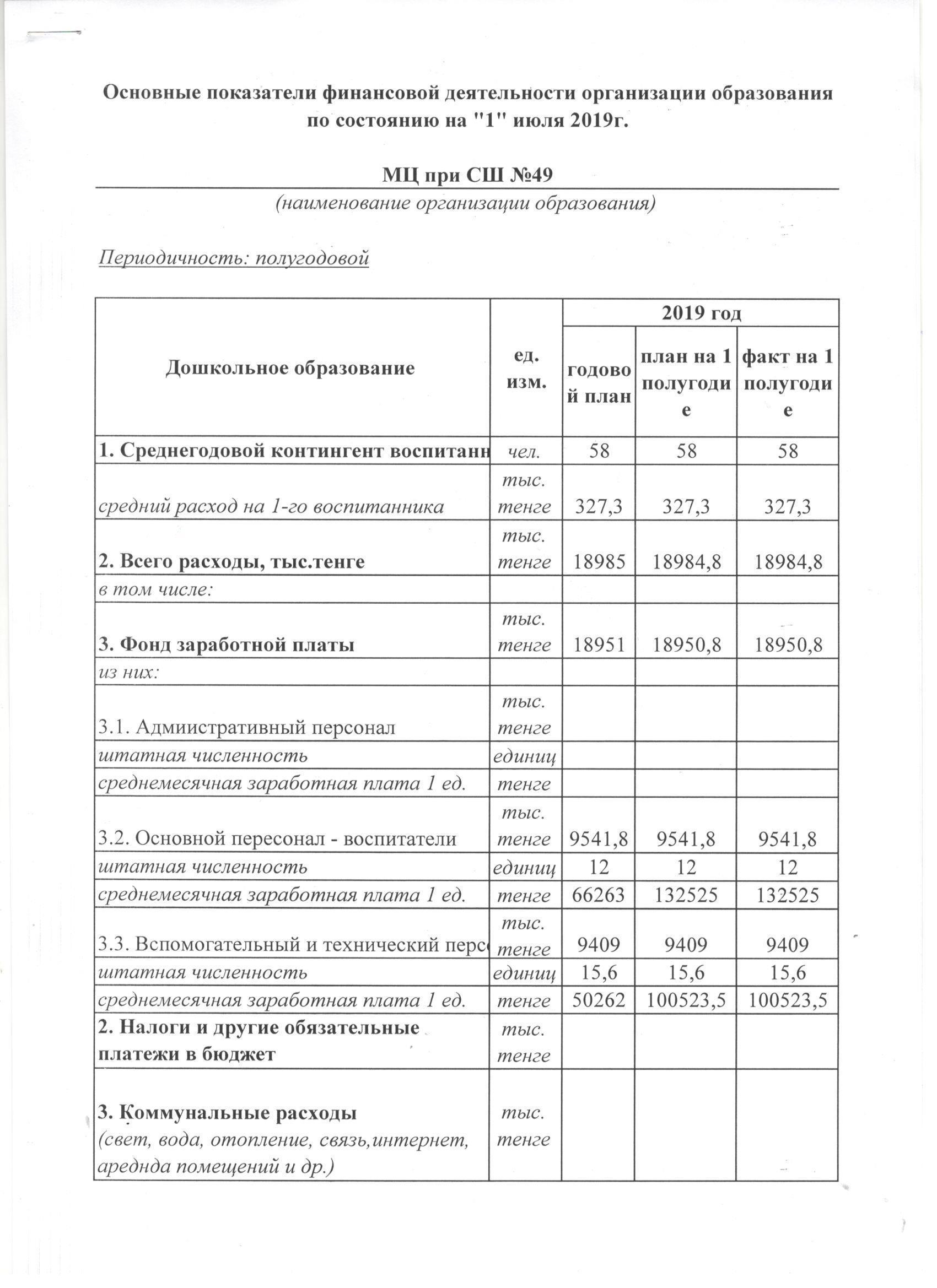 Основные показатели финансовой деятельности организации образования » "Тараз қаласы әкімдігінің білім бөлімінің Ы,Алтынсарин атындағы №49 мектеп-гимназиясы" коммуналдық мемлекеттік мекемесі