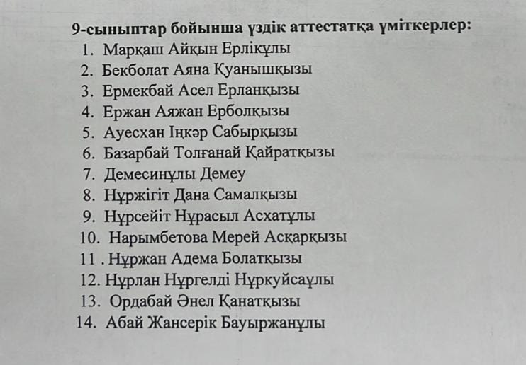"Алтын белгі" , үздік аттестатқа үміткер оқушылар 2025-2026 оқу жылы